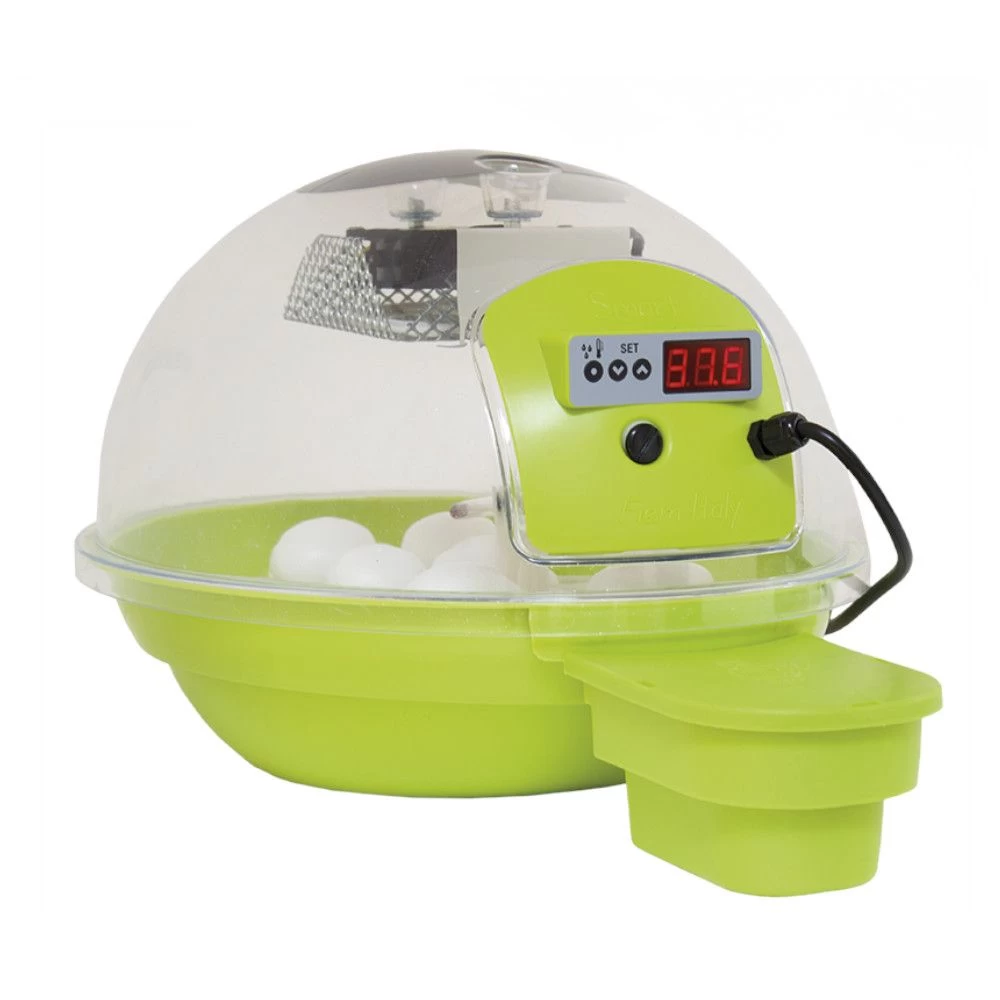 Découvrez la jolie couveuse Smart Digital proposée par la marque italienne FIEM dans sa finition verte. Pratique, performante, sa coque en plastique à moitié transparente la rend aussi très ludique.