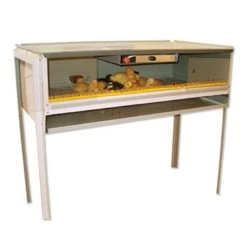 Prêt à l’emploi, ce modèle est équipé d’un éclairage blindé, d’un chauffage réglable à potentiomètre et de mangeoires et abreuvoirs intégrés.