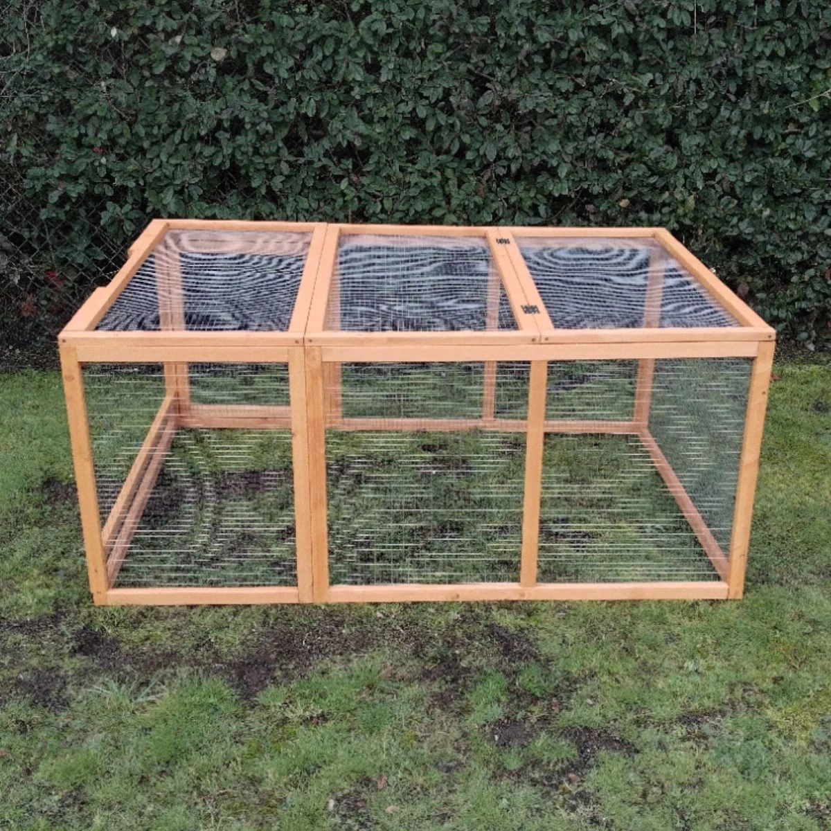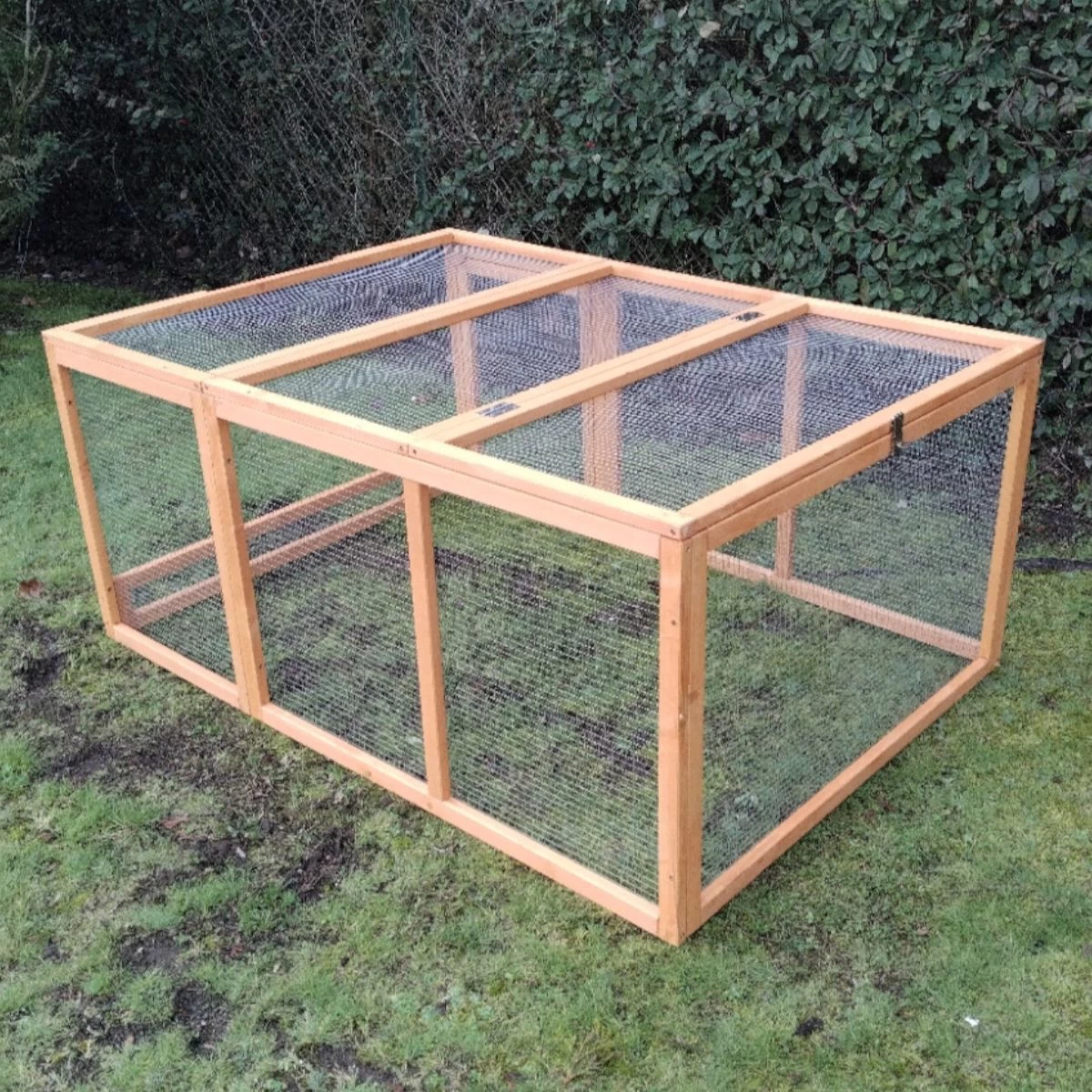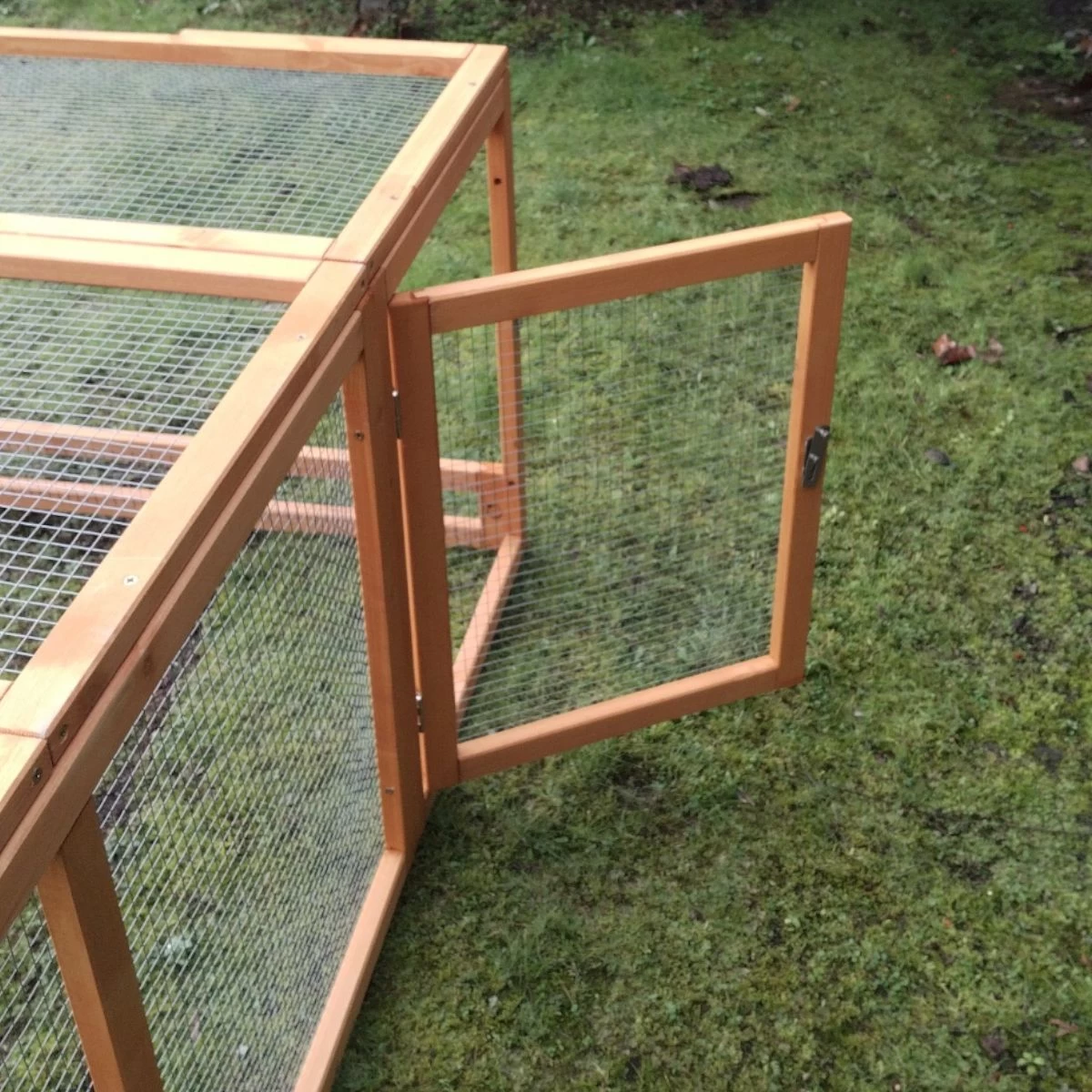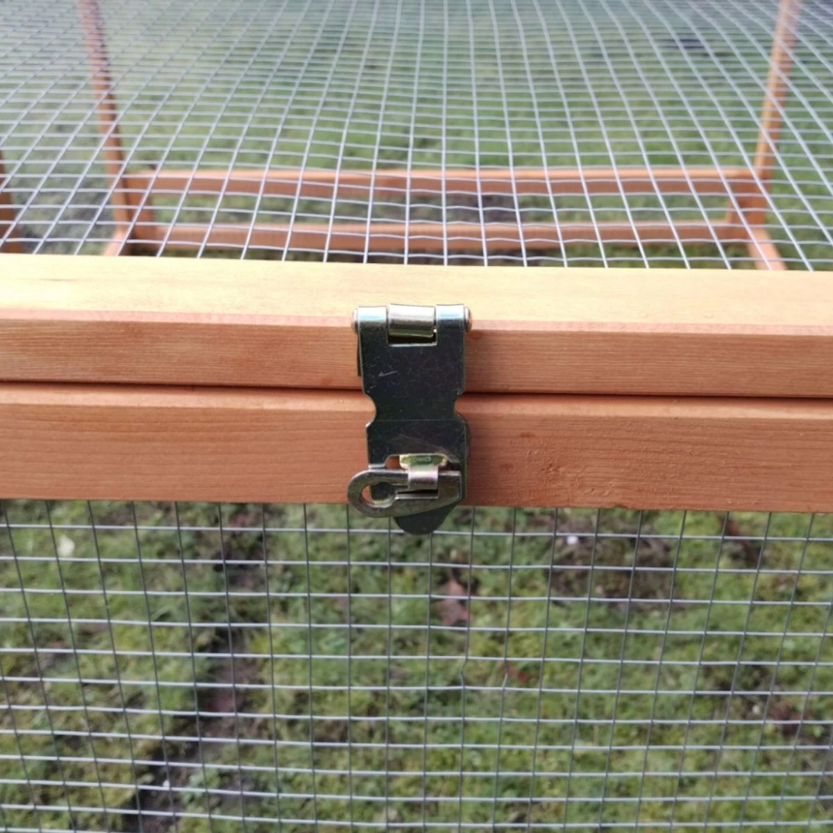 Comme le poulailler, elle est elle aussi constitué de montants de bois label FSC et son grillage est en métal galvanisé.