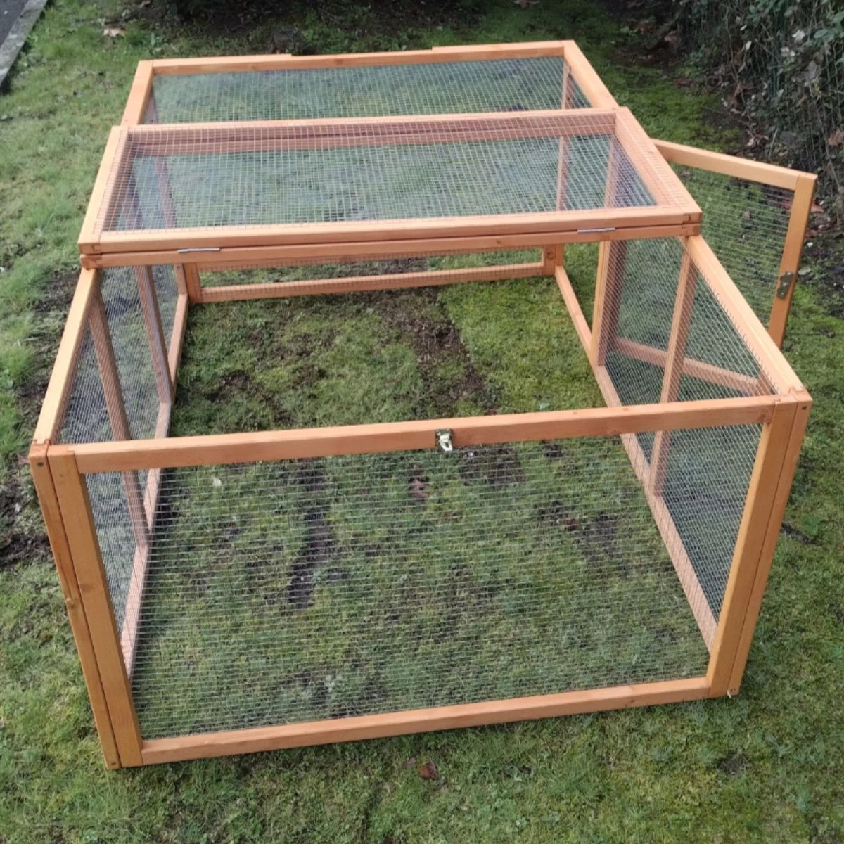 Ses deux grandes portes, l’une située sur le côté et l’autre sur le dessus, vous offrirons un bel accès à l’intérieur du parc. Ces ouvertures pourront être fermées à l’aide de verrous en métal.