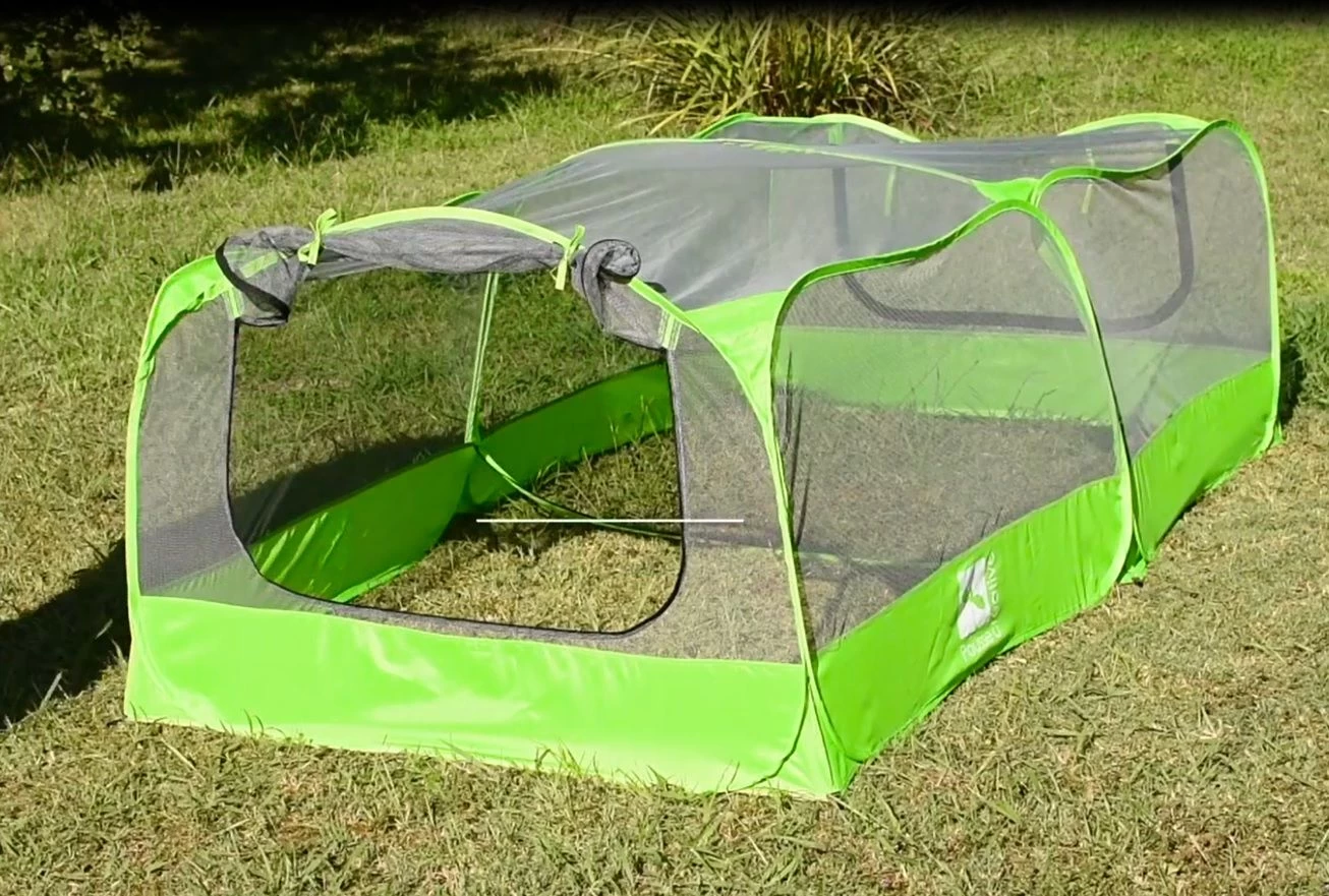 Il a l’avantage d’être équipé de deux ouvertures à fermetures sécurisées et 6 piquets permettant d’assurer une bonne stabilité au sol.