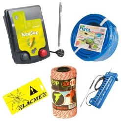 Ce kit rassemble les éléments nécessaires pour une installation simple et rapide de votre clôture. L’électrificateur secteur est ainsi livré avec trois prises terre et un rouleau de conducteur haute isolation pour relier les deux.