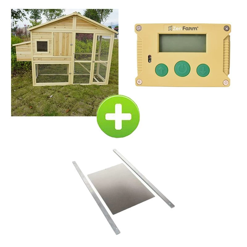 Optez pour le kit poulailler Jersey et simplifiez-vous grandement la vie : il contient un portier automatique et une trappe en aluminium en plus du poulailler !