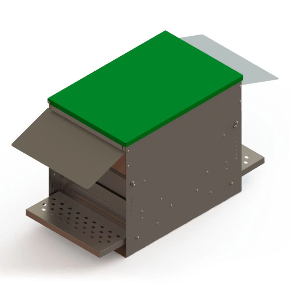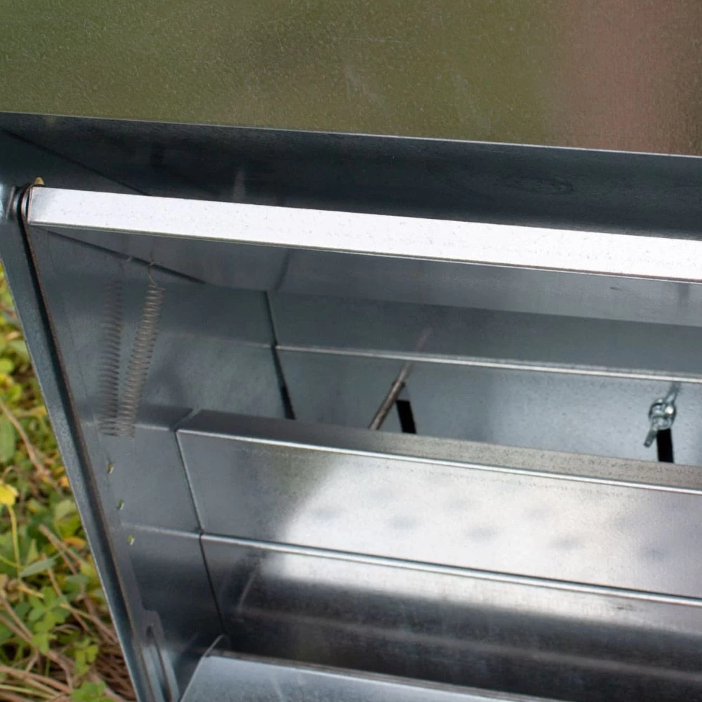 C’est avec des ressorts réglables que fonctionne le mécanisme d’ouverture de la mangeoire Jerry. Le niveau de pression permettant de l’ouvrir pourra être réglé, il y a neuf réglages différents. Les intrus souhaitant de remplir la panse avec la nourriture de vos volailles resteront ainsi sur leur faim !