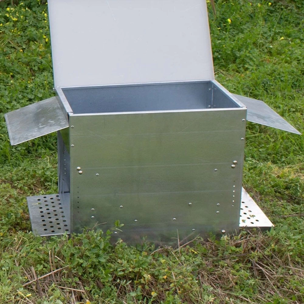 Offrez à vos poules et volailles cette grande mangeoire proposée par la marque spécialisée Ormi Group. Elle est fabriquée en tôle galvanisée et possède un système anti nuisible à pédales. Ses deux accès séparés permettent à plus d’animaux de se nourrir en même temps et sans se gêner.