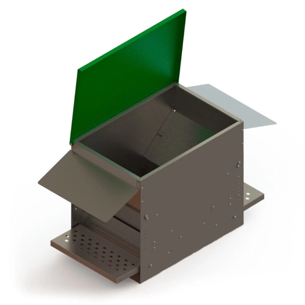 La chute des aliments est régulée et le réservoir de 64 litres conservera une bonne quantité de grain frais et propre à la consommation plus longtemps. Il pourra recevoir tout type de graines.
