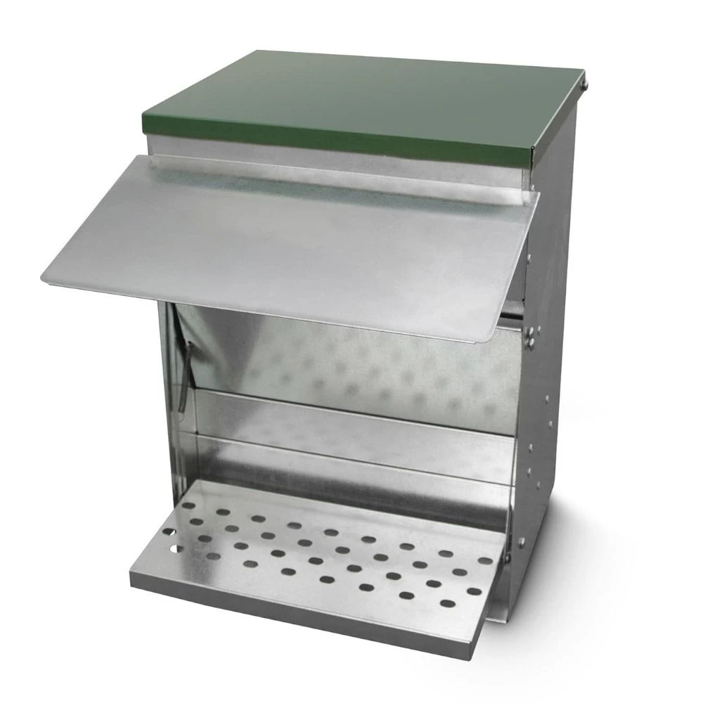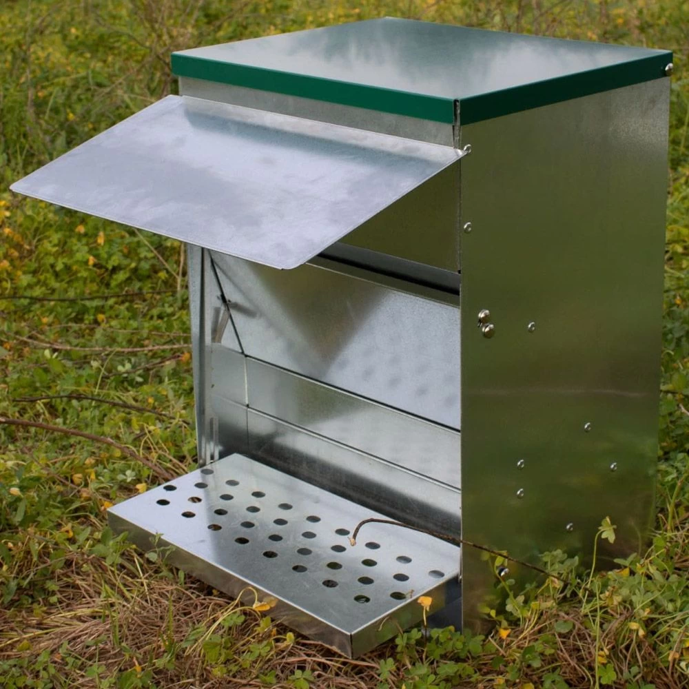 Offrez à vos poules et volailles leur nourriture dans cette mangeoire en tôle galvanisée solide et résistante. Son mécanisme à pédale empêche les rongeurs et oiseaux de se servir dans la nourriture de vos animaux.
