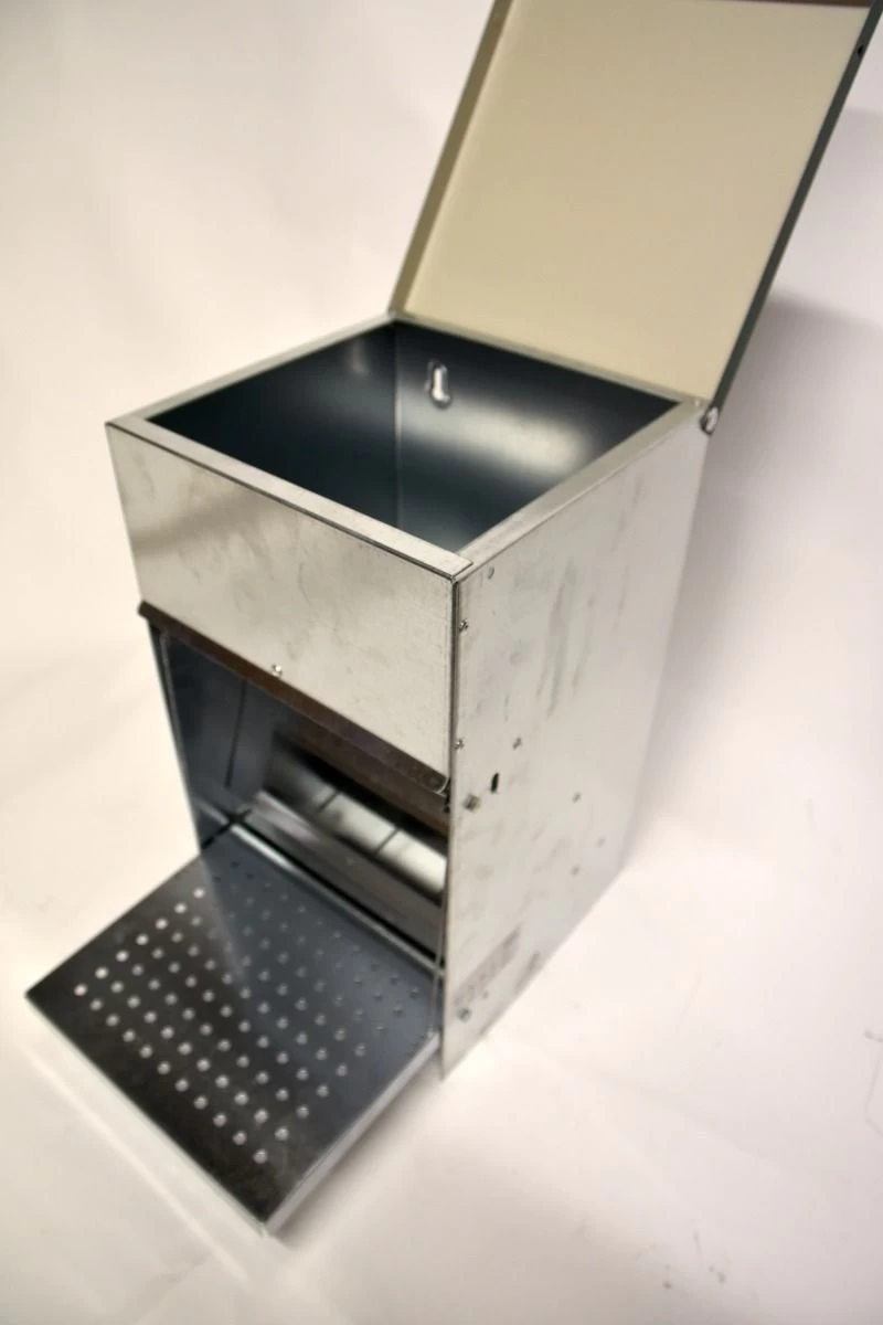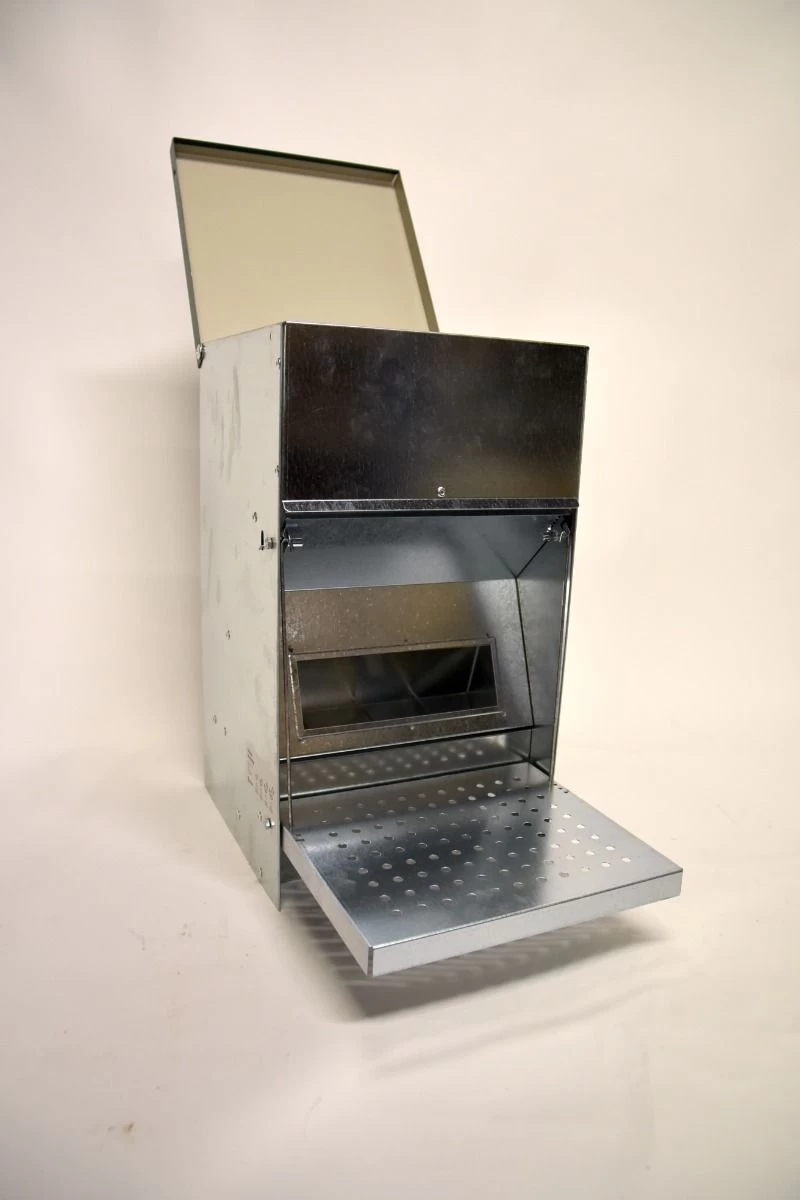 Utilisez cette mangeoire en tôle galvanisée, avec son système anti nuisible à pédale, elle empêchera les rongeurs et les oiseaux de voler la nourriture de vos poules et volailles !