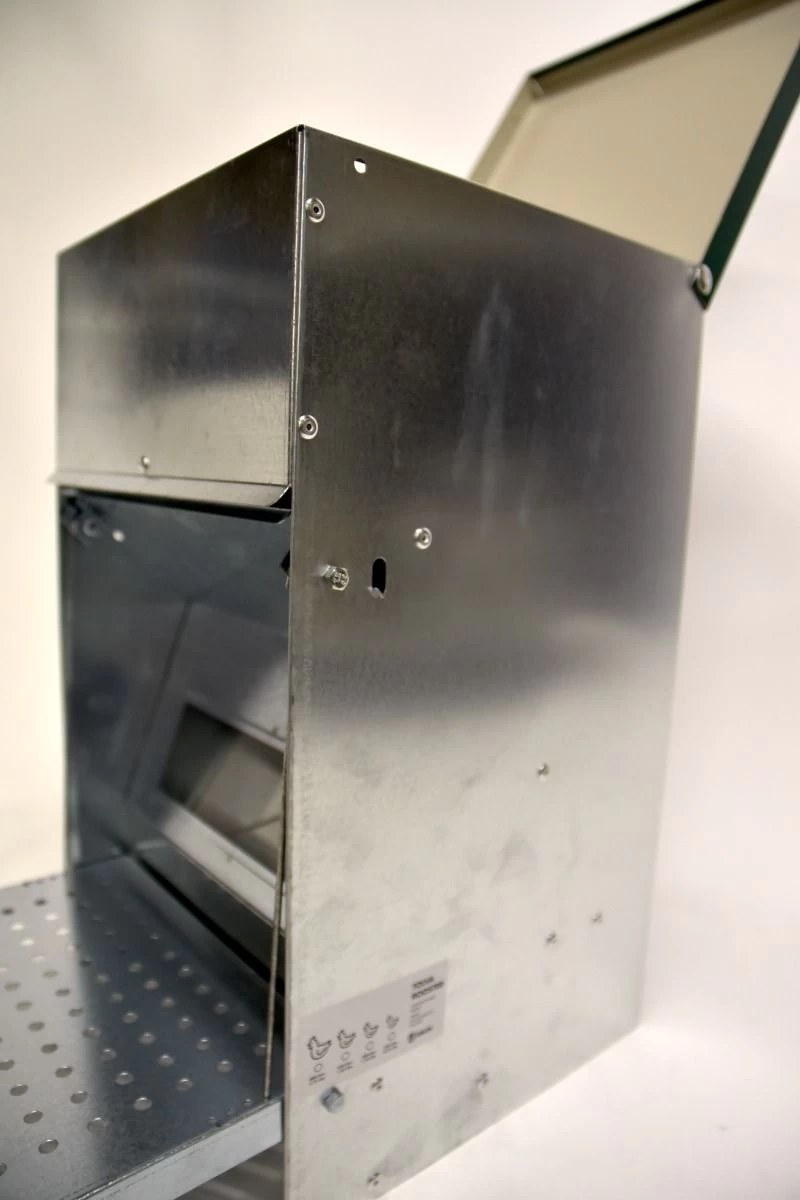 Ne laissez plus les petits rongeurs et autres oiseaux se servir dans la nourriture de vos poules et volailles avec cette mangeoire équipée d’un système anti nuisibles à pédale.