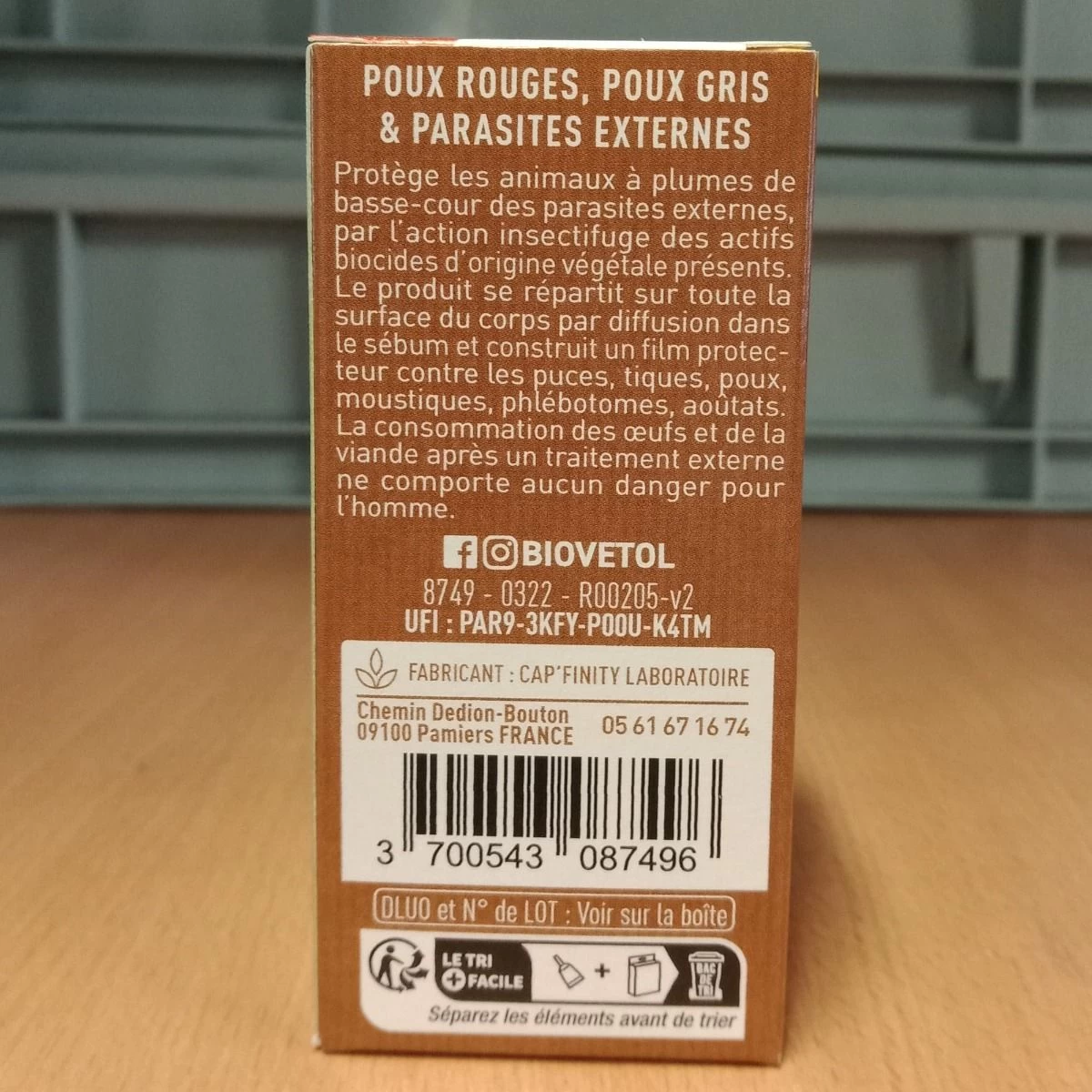 Les pipettes Biovetol sont destinées à une application externe uniquement. Protégez vos mains avec des gants et appliquez le contenu de chaque pipette sur le corps de vos volailles en deux points sur le milieu de leur dos.