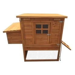 La trappe munie de verrous, qui se trouve à l’arrière, permet d’accéder très facilement à l’intérieur de l’habitacle. Le toit peut lui aussi être soulevé, ce qui est bien pratique pour aérer le poulailler.