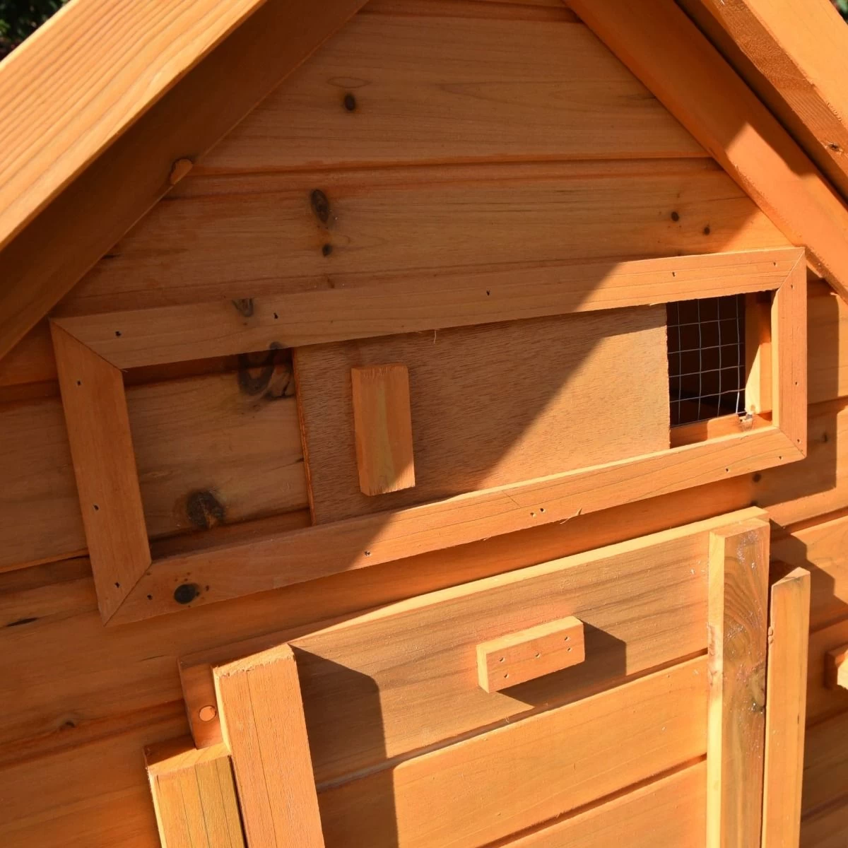 L’épaisseur du bois est gage d’une bonne protection contre le froid en hiver et contre la chaleur en été. Vos poules y seront à l’abri par tous les temps !