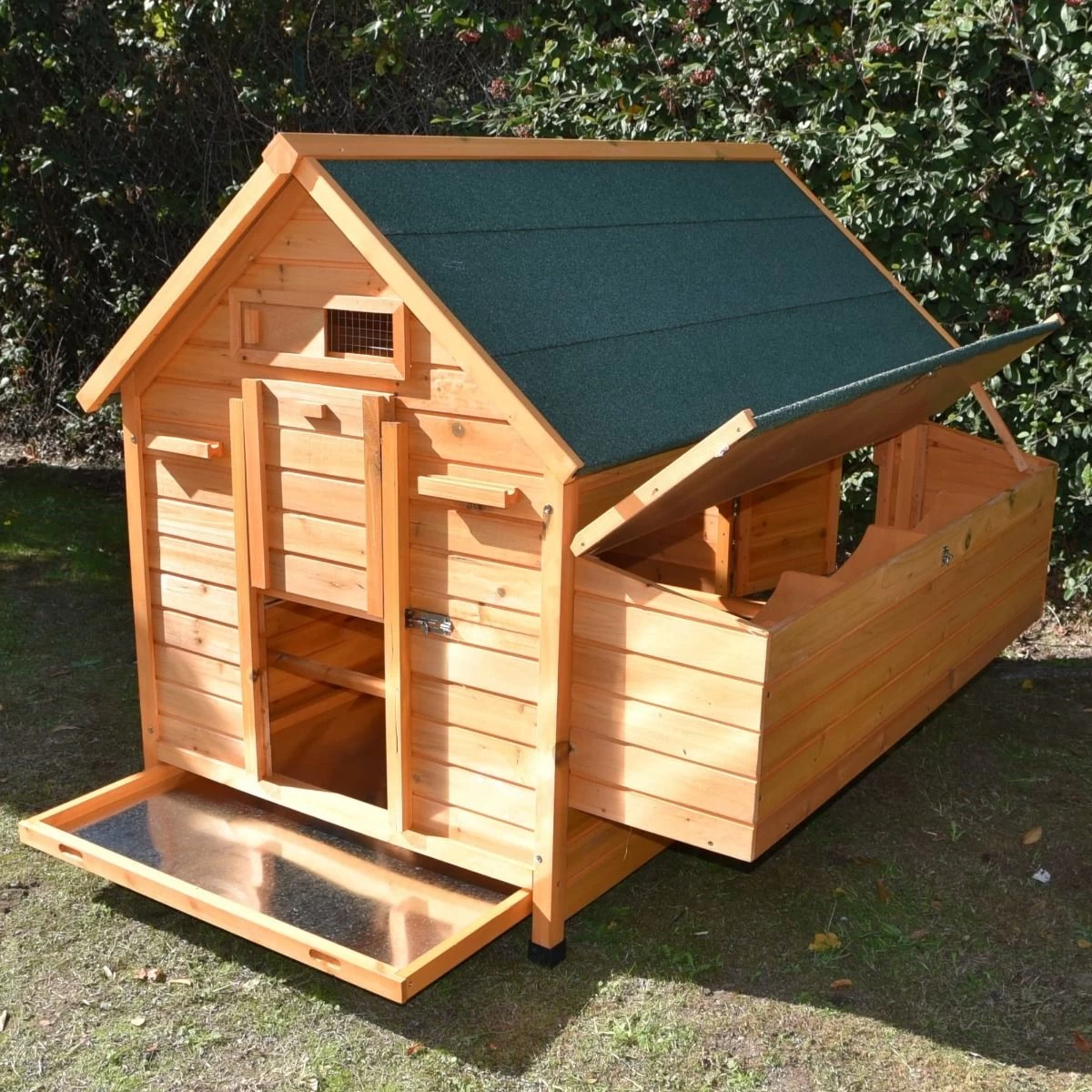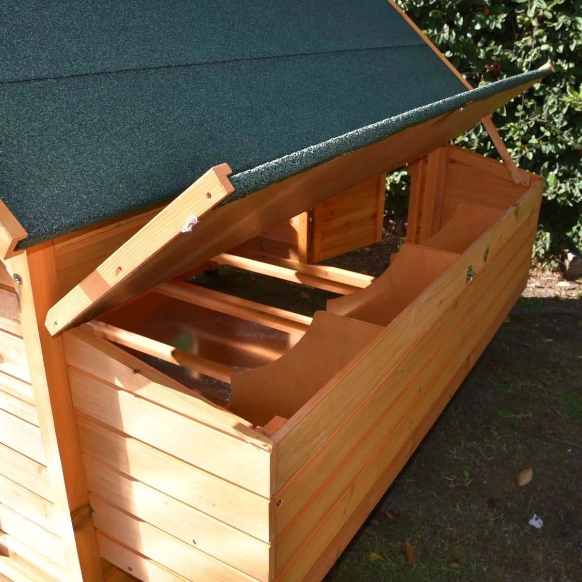 La toiture séparée du pondoir en facilite l’accès et donc la récolte des œufs. L’arrière du Cémani XXL est équipé d’une large porte grâce à laquelle vous accèderez à l’intérieur. Pratique pour le nettoyage !