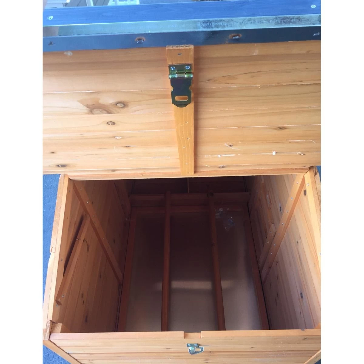 Un tiroir à déjections en métal disposé sous les perchoirs facilite grandement le nettoyage et l’assainissement de l’abri.