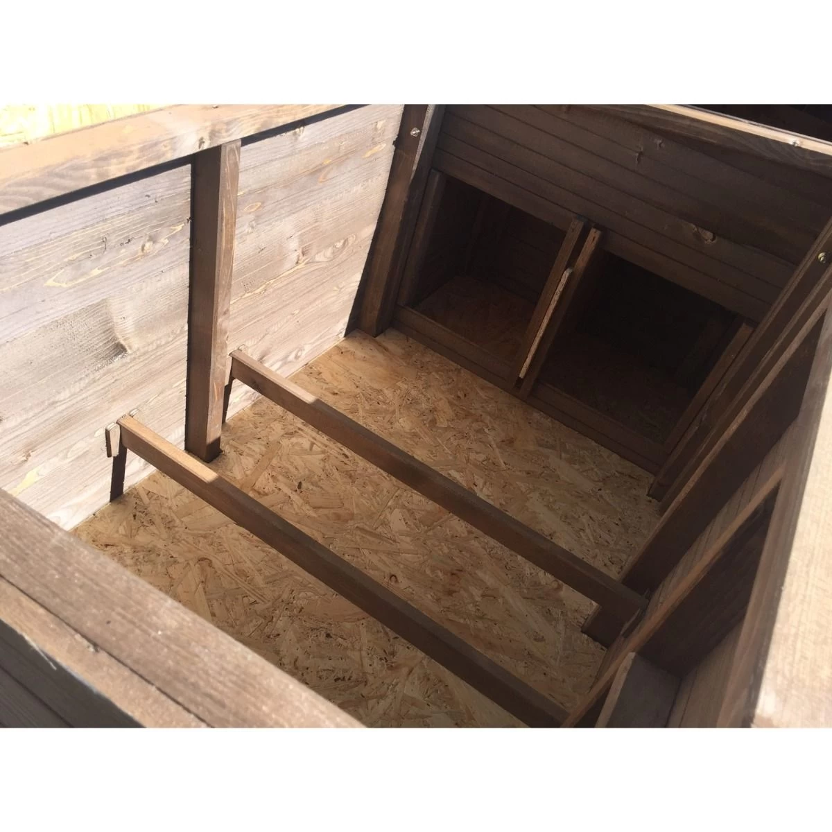 Très stable grâce à sa forme trapue et l’épaisseur de son bois, le Houdan XL possède une belle partie nuit avec pondoir divisé en deux et accessible de l’extérieur. Il sera ainsi très facile de récolter vos œufs.