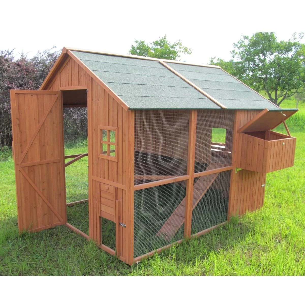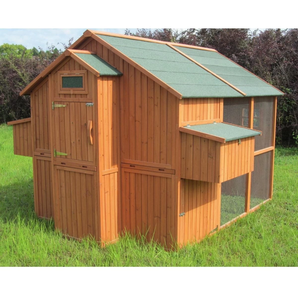 Avec son parc grillagé intégré, sa grande hauteur, ses nombreux accessoires et ses deux pondoirs, il accueillera plus d’une quinzaine de poules dans des conditions idéales.