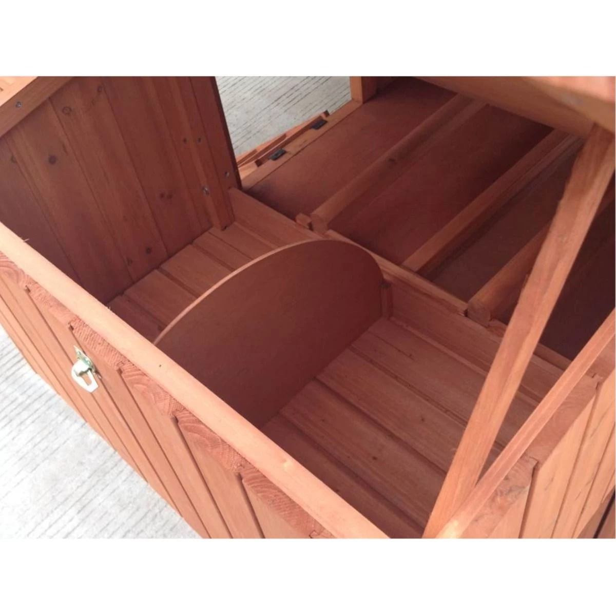 Sachant que vos poules se relaieront pour pondre, la présence de deux pondoirs tous deux divisés en deux zones de nidification permet ainsi de démultiplier les capacités du poulailler.