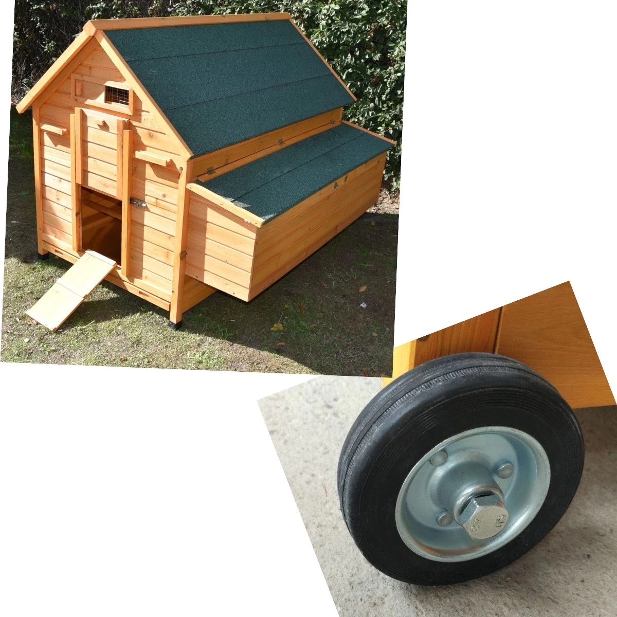 Ce kit contient en outre une paire de roulettes que vous installerez pour pouvoir déplacer sans effort votre poulailler.