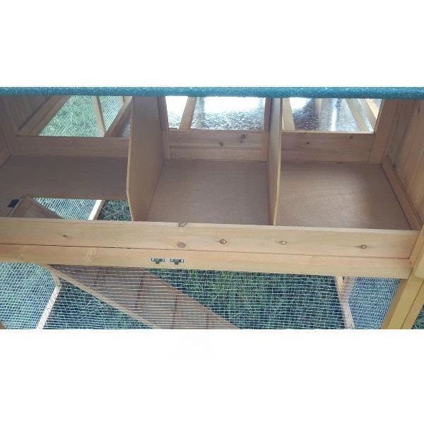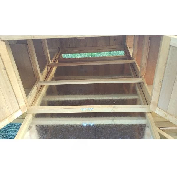 Le positionnement en hauteur de la partie, à laquelle vos volailles accèderont à l’aide d’une rampe, en améliore l’isolation. Elle écarte en effet le plancher du sol et de son humidité.