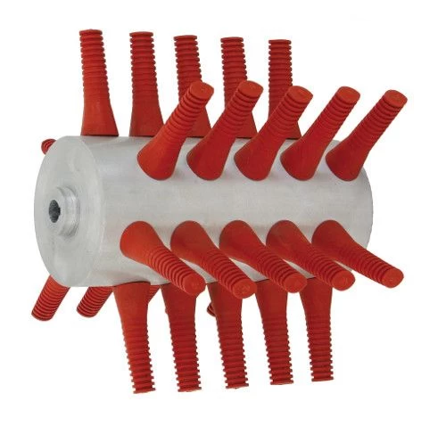 Il peut être utilisé sur d’autres plumeuses que celles de la marque RIVER SYSTEMS : le rouleau a une fissure pour insérer la clé de l’arbre du moteur qui naturellement est celle de la plumeuse Piumina. Si le rouleau est utilisé sur une autre plumeuse alors il faut s’assurer qu’il soit correctement bloqué.