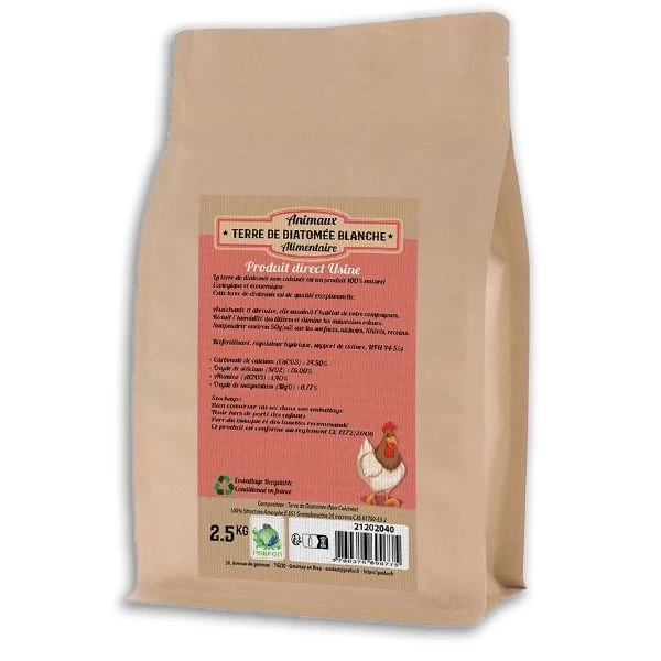 Commandez cette terre de diatomée alimentaire pour vos poules et vos volailles, ce produit entièrement naturel peut être utilisé de nombreuses manières différentes. Riche en Oligo éléments, possédant des propriétés asséchantes, c’est définitivement l’alliée des éleveurs de poules.
